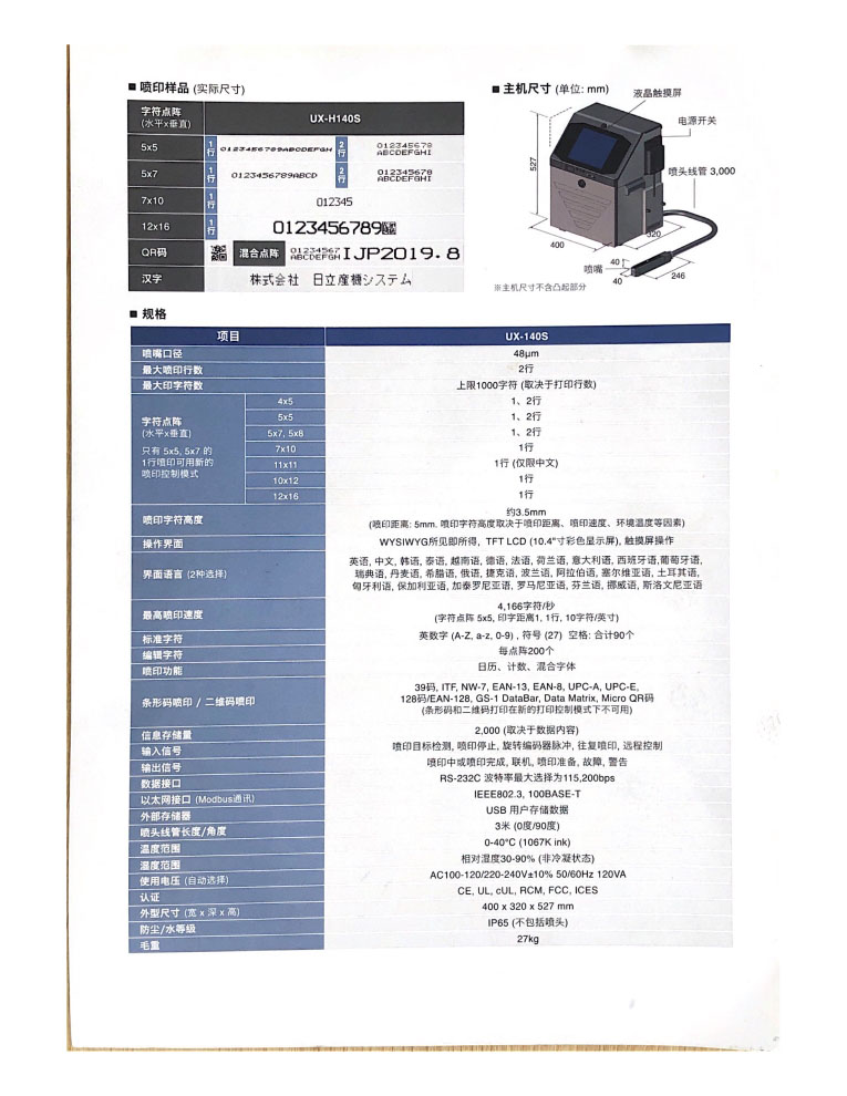 日立噴碼機(jī)UX系列